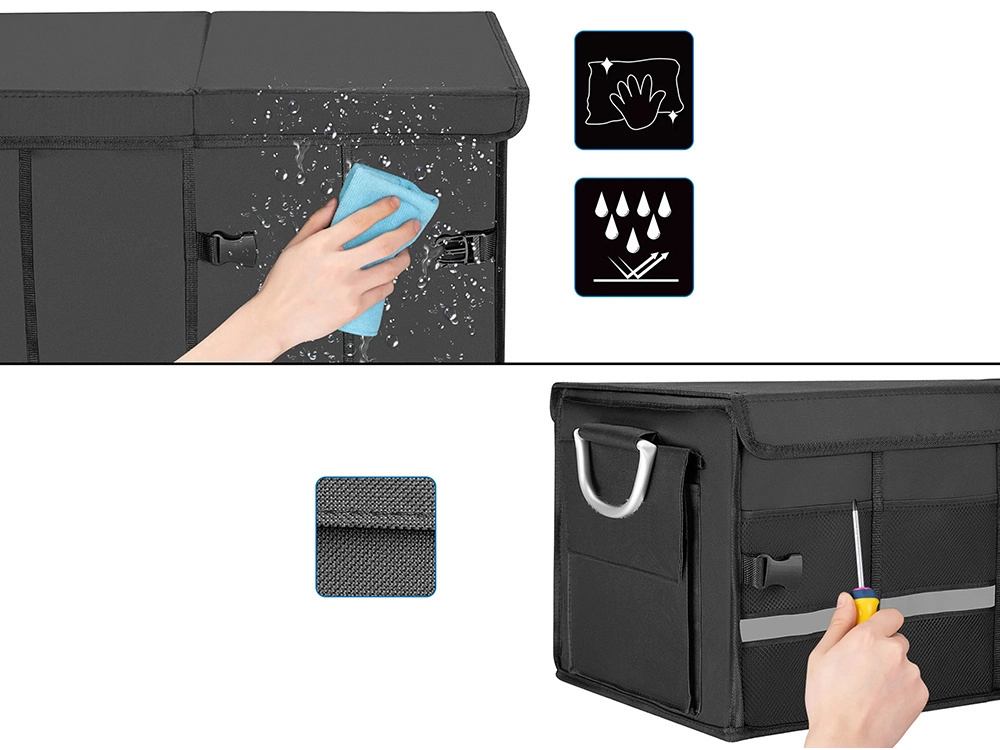 Stawiamy na funkcjonalne detale: wytrzymałe i wodoodporne materiały, antypoślizgowe dno, mocne rzepy i haczyki, które trzymają nawet przy gwałtownych manewrach. Składane organizery i przegrody z regulowanymi ściankami dopasują się do zakupów, sprzętu sportowego czy narzędzi do pracy; kieszenie pomieszczą tablety, butelki, zabawki, kable i ładowarki. Montaż jest szybki i bez narzędzi, uniwersalny dla większości aut – sedan, kombi, SUV, MPV, pickup i dostawczak; materiały są wytrzymałe, zmywalne i o solidnej konstrukcji.
