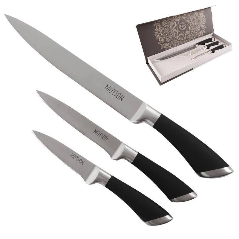Kroisz jak szef kuchni – dzięki wysokiej jakości nożom kuchennym osiągniesz ostre i precyzyjne cięcie każdego dnia. W kategorii Noże i ostrzałki znajdziesz nóż szefa kuchni, nóż santoku, nóż do chleba (do pieczywa), nóż do warzyw, nóż do filetowania i trybowania, nóż uniwersalny oraz tasak do mięsa, a także kompletne zestawy noży. Noże ceramiczne i ze stali nierdzewnej o wyższej twardości (HRC) i cienkim szlifie umożliwią szybkie i czyste krojenie, a ergonomiczna, antypoślizgowa rękojeść oraz wyważony środek ciężkości zagwarantują bezpieczne krojenie.