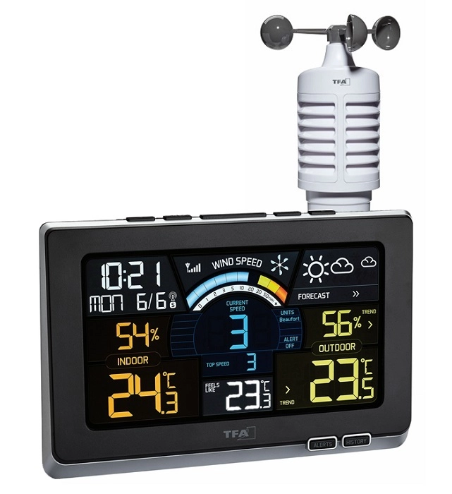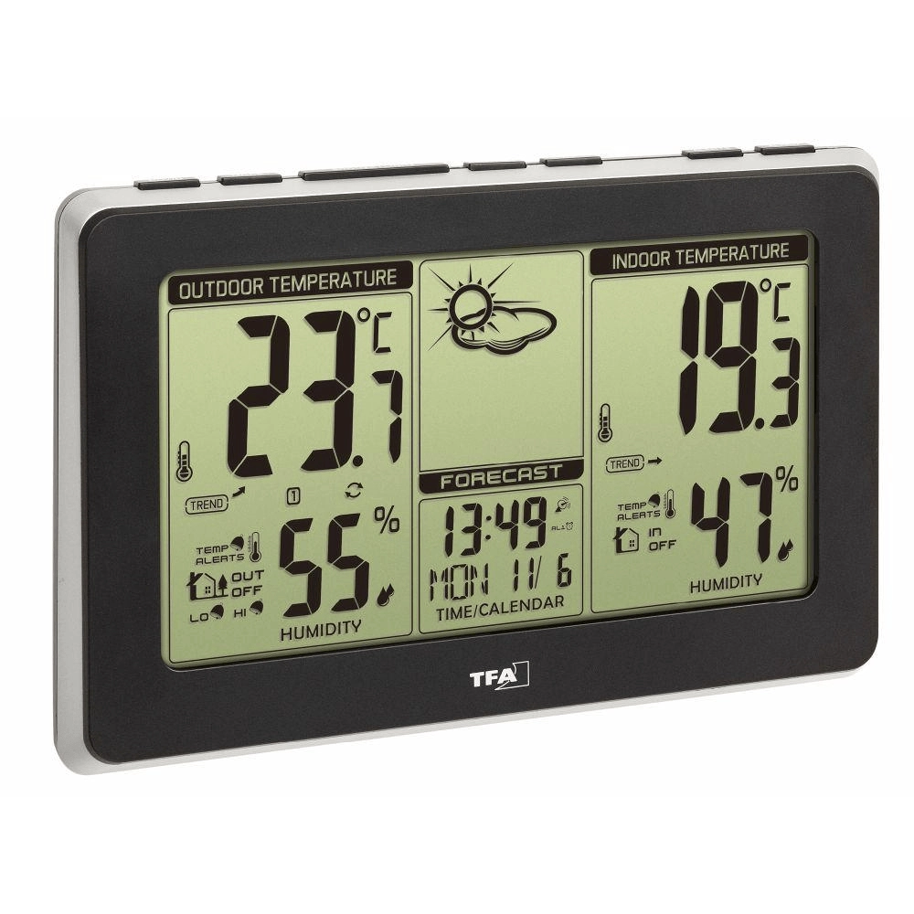 Stacje pogodowe z Wi‑Fi i bezprzewodowe stacje pogodowe oferują prognozę pogody, barometr do pomiaru ciśnienia powietrza, higrometr do wilgotności oraz graficzną prezentację trendów. Dostępna jest historia pomiarów, strzałki trendu, zapis minimum i maksimum, alarm temperatury i wilgotności, wskaźnik strefy komfortu oraz obliczanie punktu rosy. W zaawansowanych zestawach nie brakuje deszczomierza i pomiaru wiatru (anemometr), radiowo sterowanego czasu DCF, budzika, kalendarza i kolorowego podświetlanego wyświetlacza czy monitorowania danych w aplikacji. Do domu, biura, szklarni i na balkon dostępne są czujniki zewnętrzne z długim zasięgiem bezprzewodowym, wodoodporną konstrukcją oraz możliwością montażu na ścianie lub ustawienia na stole. Termometry i stacje pogodowe są dostępne w wersjach ściennych i biurkowych, z zasilaniem bateryjnym, przez USB lub zasilacz sieciowy; nie brakuje magnesu ani nóżki/stojaka. Dzięki łatwej instalacji, uniwersalnemu zastosowaniu i niezawodnej pracy usprawnisz wentylację i ogrzewanie, ograniczysz wilgoć i zyskasz dokładny wgląd w klimat w domu i na zewnątrz.