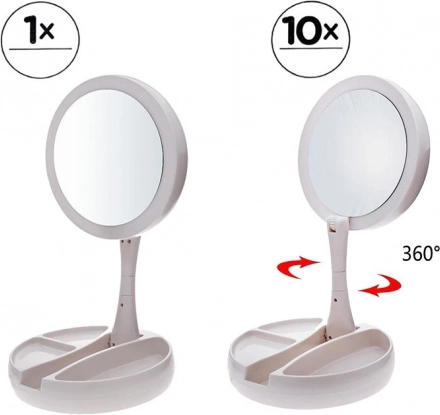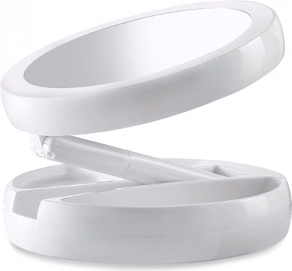 Uporządkuj kosmetyki w zintegrowanych przegródkach w podstawie. Lusterko łatwo ustawisz dzięki obrotowi o 180°.