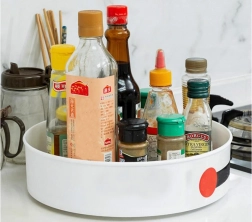 Uniwersalny obrotowy organizer to idealny pomocnik do każdej kuchni i łazienki. Kompaktowa misa ze stabilną obrotową podstawą umożliwia łatwe znalezienie i wyjęcie potrzebnej rzeczy bez przekopywania. Minimalistyczny design z wytrzymałego plastiku pasuje do większości wnętrz i pomaga utrzymać czystość i przejrzystość na półkach i na blacie.