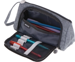 Uniwersalny piórnik 3w1 w eleganckim szarym kolorze służy jako szkolne etui, kosmetyczka i organizer podróżny. Oferuje dwie komory, praktyczne kieszonki oraz elastyczne uchwyty dla idealnego porządku. Dzięki wytrzymałemu materiałowi, zamkowi błyskawicznemu i pętelce na nadgarstek jest idealny do szkoły, w podróż i do biura.