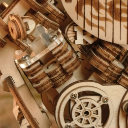 Imponuje żywą pracą „silnika” z ruchem tłoków oraz bogatym zestawem detali, w tym przekładni i elementów dekoracyjnych.