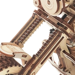 Ta drewniana mechaniczna motorowerowa układanka to świetny wybór dla wszystkich, którzy kochają design, technikę i rzemieślniczą pracę. Nakręcany sprężynowy mechanizm ze spustem wprawia model w żwawy ruch, a funkcjonalna kierownica umożliwia częściowe prowadzenie kierunku. Realistyczną pracę silnika doskonale uzupełnia ruch tłoków oraz działające zawieszenie przedniego widelca.
