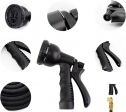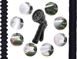 Zestaw zawiera również wielofunkcyjny pistolet natryskowy z ośmioma trybami sprayu. Łatwe zablokowanie spustu za pomocą metalowego haczyka umożliwia płynne dozowanie wody bez konieczności trzymania uchwytu wciśniętego. Ergonomiczna, antypoślizgowa rączka zapewnia wygodne i bezpieczne użytkowanie.
