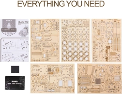 Ten szczegółowy i dopracowany model ciężarówki jest doskonałym przykładem precyzyjnego rzemiosła. Wykonany z laserowo wyciętych elementów z 2 mm lipowej sklejki, które łatwo wyciska się z podkładu. Celem jest rozwijanie Twojego myślenia technicznego, wyobraźni i drobnej motoryki.