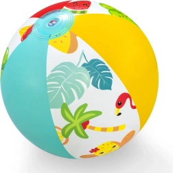 Zestaw zawiera dmuchany basen, koło do pływania i plażową piłkę – wszystko w spójnym, zabawnym tropikalnym wzorze. Dzieci mają od razu pod ręką wszystko do bezpiecznych wodnych harców.