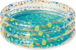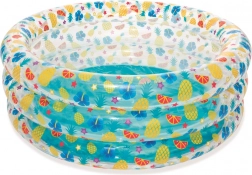 Spraw dzieciom radość letnim orzeźwieniem w nadmuchiwanym baseniku z wesołym, owocowym nadrukiem. Dzięki średnicy 170 cm i wysokości 53 cm oferuje dużo miejsca do zabawy, a trzypierścieniowa konstrukcja zapewnia stabilność, zaś miękkie, nadmuchiwane dno wygodę. Basenik jest łatwy do nadmuchiwania i spuszczania, idealny dla dzieci od 6 lat.