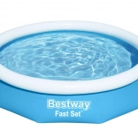 Szybko i łatwo do złożenia basen Bestway Fast Set zapewnia doskonałe orzeźwienie dla całej rodziny. Jego prosty design z dmuchanym górnym pierścieniem jest idealny do wygodnego pływania na zewnątrz.