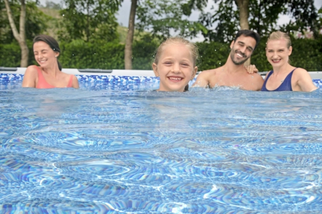 Zestaw basenowy zawiera pompę i filtr, które zapewniają krystalicznie czystą wodę przez całe lato. Sam basen mieści do 10 220 litrów wody, co daje wystarczająco dużo miejsca dla kilku osób.