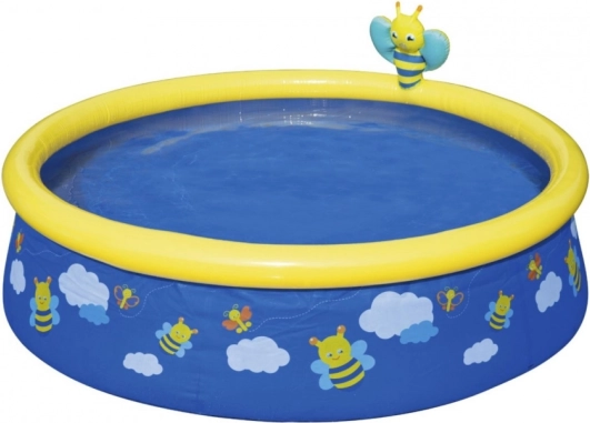 Uroczy dziecięcy basenik z konstrukcją rozpierającą i motywem pszczółek zapewnia orzeźwienie i zabawę podczas upalnych dni. Zintegrowany rozpylacz w kształcie pszczółki podłączysz do węża ogrodowego, dmuchany kołnierz gwarantuje wygodę i stabilność, a pojemność do 447 l oferuje dużo miejsca na wodne harce.