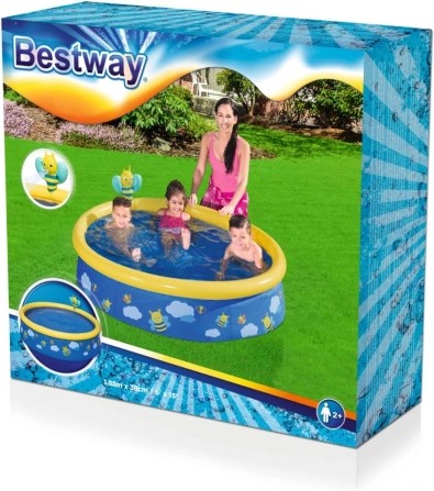 Podaruj dzieciom własne wodne królestwo w ogrodzie. Dziecięcy basenik BESTWAY z motywem pszczółek szybko przygotujesz do użytku, łatwo napełnisz i opróżnisz, a dzięki dmuchanemu kołnierzowi jest przyjemny i bezpieczny w dotyku dla małych pływaków. Zabawny rozpylacz w kształcie pszczółki zamieni zwykłe pluskanie w radosną zabawę.