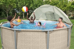Daszek na baseny Bestway jest idealnym dodatkiem do Twoich przydomowych basenów. Oferuje naturalną ochronę UV i łatwy montaż, zawiera zintegrowane okienko umożliwiające wyglądanie na zewnątrz.