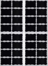 Zawiera 24 etykiety, rozłożone na 4 arkuszach. Etykiety wykonane z PVC są łatwe do odklejenia i wielokrotnego użytku. Nie stosować pod wodą ani w zmywarce.
