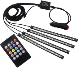 LED oświetlenie wnętrza auta Pilot Light Bar 4×12 LED RGB z pilotem