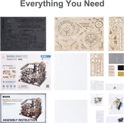 ROKR Marble Night City jest zdumiewającym 3D modelem układanki toru kulkowego, który łączy zabawę i edukację. Ten model składa się z 294 precyzyjnie wyciętych elementów, które tworzą skomplikowany tor z różnymi przeszkodami i ręcznie napędzaną mechaniką obrotową korbą. W zestawie znajduje się kompletny podręcznik, który przeprowadzi Cię przez proces składania.