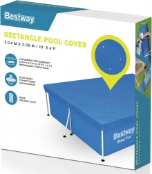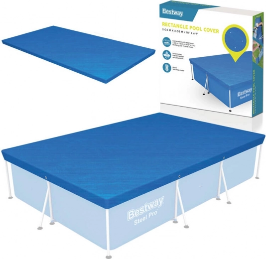Pokrywa jest zaprojektowana tak, aby chroniła twój prostokątny basen z ramą o wymiarach 300 x 201 cm. Specjalne otwory odpływowe na pokrywie zapobiegają gromadzeniu się wody. Dzięki zintegrowanym paskom można łatwo i bezpiecznie przymocować pokrywę do konstrukcji basenu.