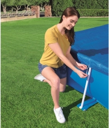 Dzięki linom pokrywa jest łatwo mocowana do basenu, co zapewnia jej stabilność nawet podczas wietrznej pogody.