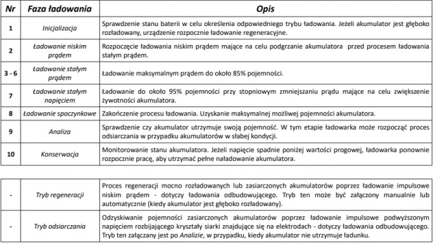 - Wybór prądu ładowania do szybkiego i podtrzymującego ładowania