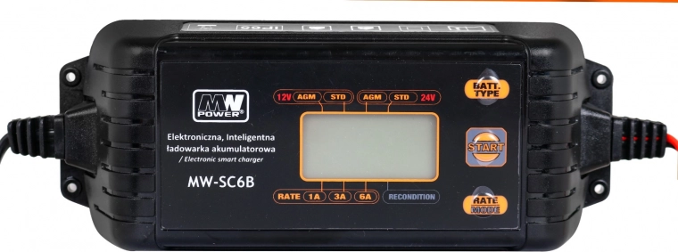 Niezawodna i bezpieczna inteligentna ładowarka akumulatorów 12V/24V jest przeznaczona do akumulatorów ołowiowych, Ca/Ca, GEL, AGM oraz typu deep cycle. Dzięki sterowaniu mikroprocesorowemu automatycznie rozpoznaje stan akumulatora i dobiera optymalny tryb do szybkiego oraz podtrzymującego ładowania. Przejrzysty wyświetlacz LCD pokazuje kluczowe informacje i ułatwia obsługę.