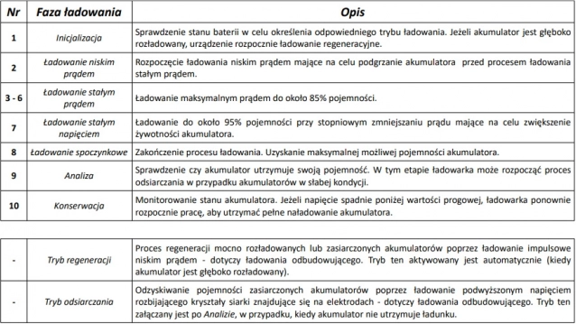 - Automatyczne ładowanie, diagnostyka stanu, odsiarczanie