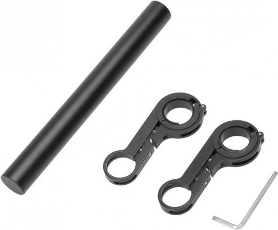 Uchwyt zapewnia dodatkową przestrzeń na kierownicy, co ułatwia montaż wielu urządzeń, takich jak światła czy GPS.