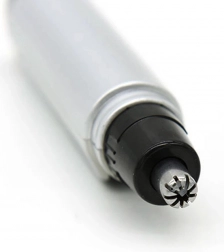Urządzenie zapewnia bezpieczny uchwyt dla precyzyjnego manewrowania podczas przycinania włosków w nosie i uszach.