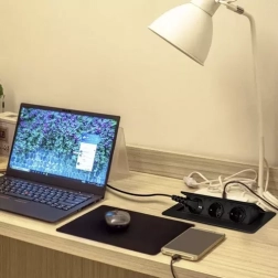 Panel jest przeznaczony do montażu w blacie roboczym, blacie stołu lub stole konferencyjnym – pionowo i poziomo. Po naciśnięciu przycisku gniazda płynnie wysuwają się ponad blat, po użyciu łatwo je ukryjesz, zachowując porządek i bezpieczeństwo miejsca pracy.