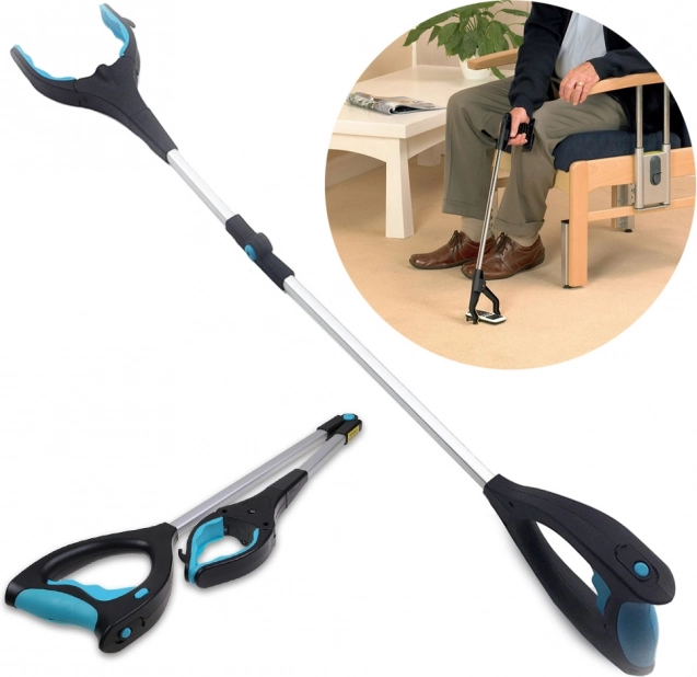 Z łatwością można sięgnąć po przedmioty umieszczone wysoko lub w trudno dostępnych miejscach dzięki jego składanej funkcji. Ergonomiczna rączka zapewnia wygodę użytkowania, a antypoślizgowe szczęki bezpiecznie chwytają przedmiot.