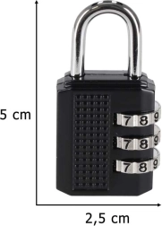 Niezawodna kłódka podróżna z trzema tarczami jest idealna do zabezpieczania suwaków walizek, plecaków, szafek i mniejszych szafeczek. Kod domyślny ustawiony jest na 000 i w kilka chwil zmienisz go na własną kombinację. Dzięki kompaktowym wymiarom i niskiej wadze wygodnie mieści się w kieszeni lub bagażu podręcznym.