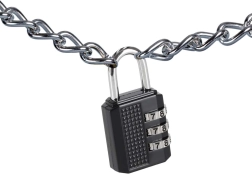 Solidny metalowy pałąk i mocny korpus z fakturowanym uchwytem zapewniają pewną obsługę nawet w rękawiczkach. Kłódka oferuje zabezpieczenie bezkluczykowe – żadnych zmartwień z kluczem, wystarczy zapamiętać kod.