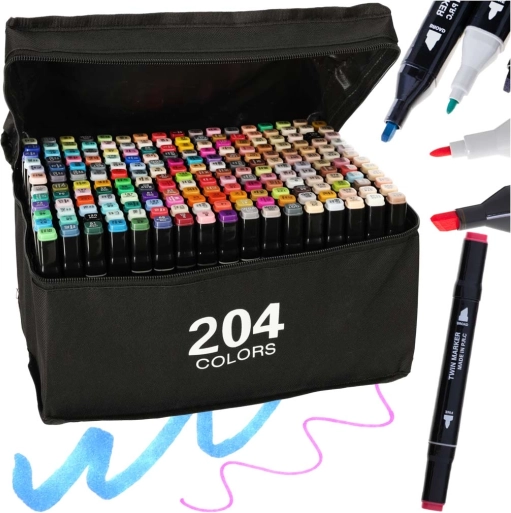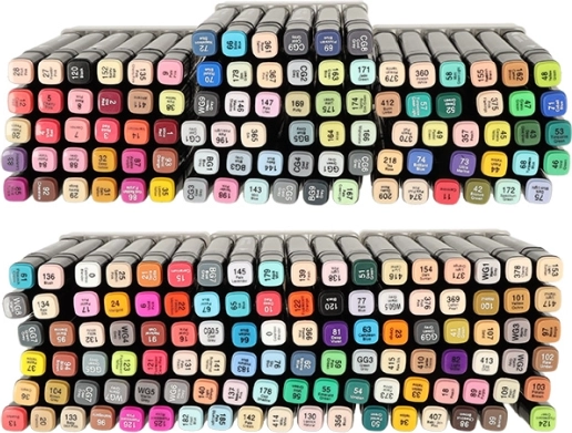 Dzięki rozbudowanej palecie 204 odcieni otrzymujesz wszystko do rysowania, szkicowania, cieniowania i kolorowania. Alkoholowy tusz gładko się miesza, umożliwia łatwe blendowanie i po wyschnięciu jest trwały, więc się nie rozmazuje.