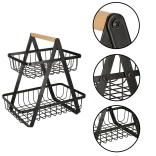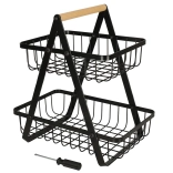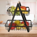 Minimalistyczny, dwupoziomowy kosz jest idealny do zorganizowanego i estetycznego przechowywania owoców, warzyw lub pieczywa. Czarna, metalowa forma pasuje do nowoczesnych i klasycznych wnętrz, a stabilna rama w kształcie A zapewnia pewność podczas codziennego użytkowania.