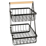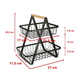 Górny i dolny kosz mają praktyczną głębokość dla łatwego dostępu. Drewniany uchwyt pozwala wygodnie przenosić kosz między blatem kuchennym a stołem w jadalni. Montaż jest szybki i poradzisz sobie z nim w kilka minut dzięki dołączonym śrubkom i śrubokrętowi.