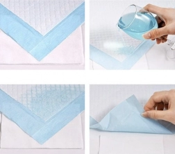 Wyjątkowa absorpcja i nieprzepuszczalność: Każdy podkład ma cztery uszczelnione krawędzie i reliefowy wzór dla maksymalnej absorpcji do 350 ml płynu. Podkłady chronią powierzchnie przed wyciekami wilgoci.