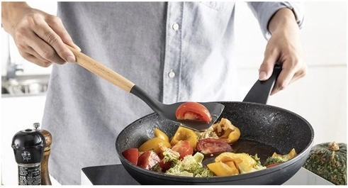Silikonowa konstrukcja jest elastyczna, co oznacza, że narzędzia nie zarysują patelni i garnków oraz pozostają delikatne dla ich powierzchni.