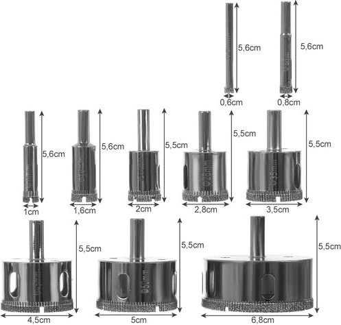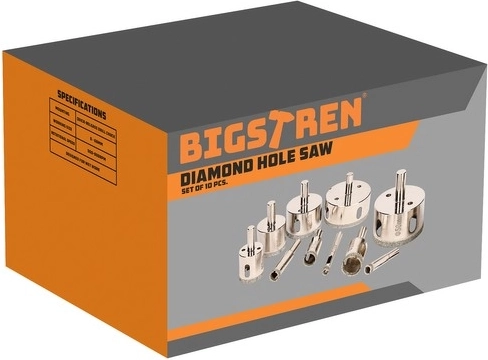 Zestaw 10 diamentowych otwornic BIGSTREN obejmuje najczęstsze średnice dla instalatorów i elektryków: 6, 8, 10, 16, 20, 28, 35, 45, 50 i 68 mm. Dzięki diamentowej powłoce otwornice oferują znakomitą trwałość i maksymalną precyzję bez wykruszania krawędzi płytek. Wiercenie możliwe na mokro dla dłuższej żywotności i szybszego odprowadzania ciepła lub na sucho przy krótszych odcinkach.