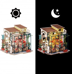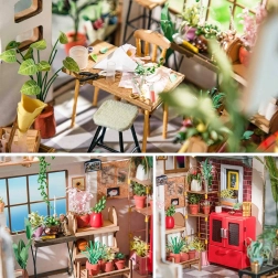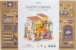 Stwórz własną malowniczą kwiaciarnię z dołączoną oranżerią oraz wieloma roślinami, półkami i wycinanymi dodatkami. Zestaw zawiera wstępnie wycięte elementy ze sklejki, elementy papierowe i tekstylne oraz zestaw narzędzi, dzięki którym powstanie realistyczny model z napisem „Flower Shop” i przezroczystą szklaną częścią. Po złożeniu posłuży jako stylowa dekoracja wnętrza.