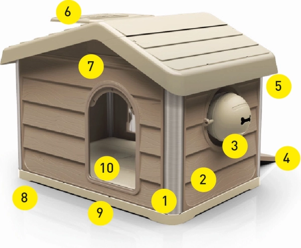 LOBOO SMARTKAVE ALASKA to praktyczny i piękny domek, który łączy nowoczesny design, wysoką trwałość i przemyślane detale dla maksymalnego komfortu Twojego pupila. Dach dwuspadowy zapobiega gromadzeniu śniegu i zanieczyszczeń, regulowana wentylacja zapewnia cyrkulację powietrza, a uchylana tylna ścianka potrafi latem zamienić zamkniętą przestrzeń w otwartą i przewiewną altanę.