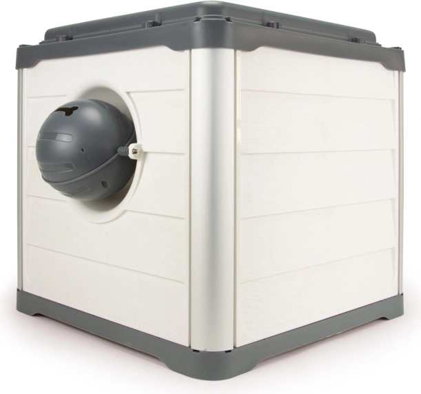 LOBOO SMARTKAVE CUBE to praktyczny, trwały i estetyczny domek dla psów i kotów z płaskim dachem, który zapewnia bezpieczne miejsce do snu i odpoczynku, a także chroni przed warunkami pogodowymi. Jego konstrukcja łączy anodowane aluminium oraz tworzywo wzmocnione naturalnymi włóknami z łupin migdałów, co zapewnia długą żywotność i dbałość o środowisko.