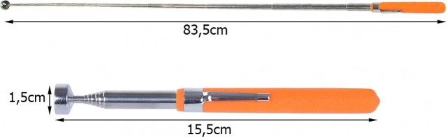 Praktyczny teleskopowy magnes do łatwego podnoszenia metalowych przedmiotów z trudno dostępnych miejsc. Dzięki zakresowi 15,5–83,5 cm oraz silnemu magnesowi bezpiecznie chwyta śrubki, nakrętki i drobne narzędzia. Antypoślizgowa rękojeść zapewnia wygodny chwyt, a kieszonkowy klips pozwala mieć narzędzie zawsze pod ręką.