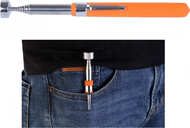 Ten teleskopowy magnetyczny chwytak to idealny pomocnik do warsztatu, serwisu i domu. Umożliwia łatwe wychwytanie metalowych przedmiotów z wąskich szczelin, spod mebli czy z komory silnika. Kompaktowa konstrukcja „pióra” mieści się w kieszeni, a mimo to oferuje zasięg do 83,5 cm.