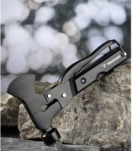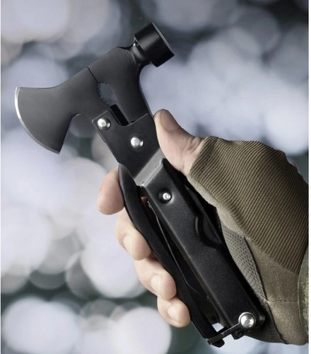 Narzędzie zawiera 17 zintegrowanych funkcji, w tym siekierę, piłkę, szczypce i wiele innych, co czyni je idealnym akcesorium na każdą wyprawę outdoorową.