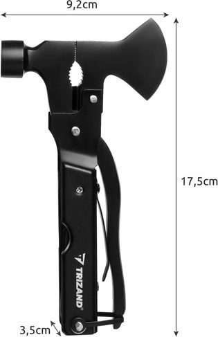 Wielofunkcyjne narzędzie Trizand 17w1 łączy wszechstronność i kompaktowość na potrzeby Twoich przygód na świeżym powietrzu. Przy długości zaledwie 17,5 cm i masie 376 g z łatwością przypniesz je do paska lub schowasz w plecaku. Ciesz się wygodą podczas biwakowania, pieszych wędrówek czy wędkowania, mając niezbędne narzędzia zawsze pod ręką.