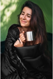 Śpiwór 2w1 pozwala po całkowitym rozpięciu użyć go jako koc. Idealny na różne wyprawy, czy to pod namiotem czy w pensjonacie.