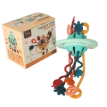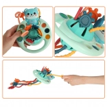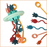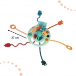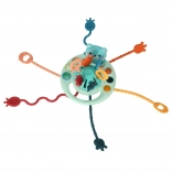 Ta kolorowa zabawka sensoryczna inspirowana pedagogiką MONTESSORI oferuje dzieciom bogactwo bodźców: sprężyste silikonowe sznureczki w różnych kolorach i strukturach do przeciągania, przyciski/koraliki do naciskania oraz kółko do przesuwania. Dzięki bezpiecznym materiałom sprawdzi się także jako gryzak podczas ząbkowania.