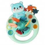 Koraliki do naciskania i przesuwane kółko oferują kolejne formy zabawy, które wspierają koncentrację i koordynację oko–ręka.