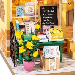 Półeczki z książkami, uroczy miś, kwiaty i dodatki – każdy detal współtworzy realistyczny i magiczny wygląd mini księgarni.