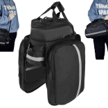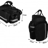Wielofunkcyjna duża torba rowerowa, idealna na dłuższe trasy. Zapewnia wystarczającą przestrzeń na odzież, drobne przedmioty i żywność. Wyposażona w pokrowiec przeciwdeszczowy i elementy odblaskowe dla bezpieczeństwa.