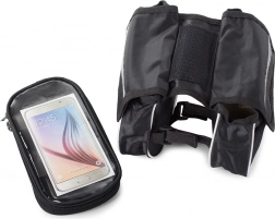 - Złożona z podwójnej kieszeni na telefon oraz dwóch kieszeni z siatki.